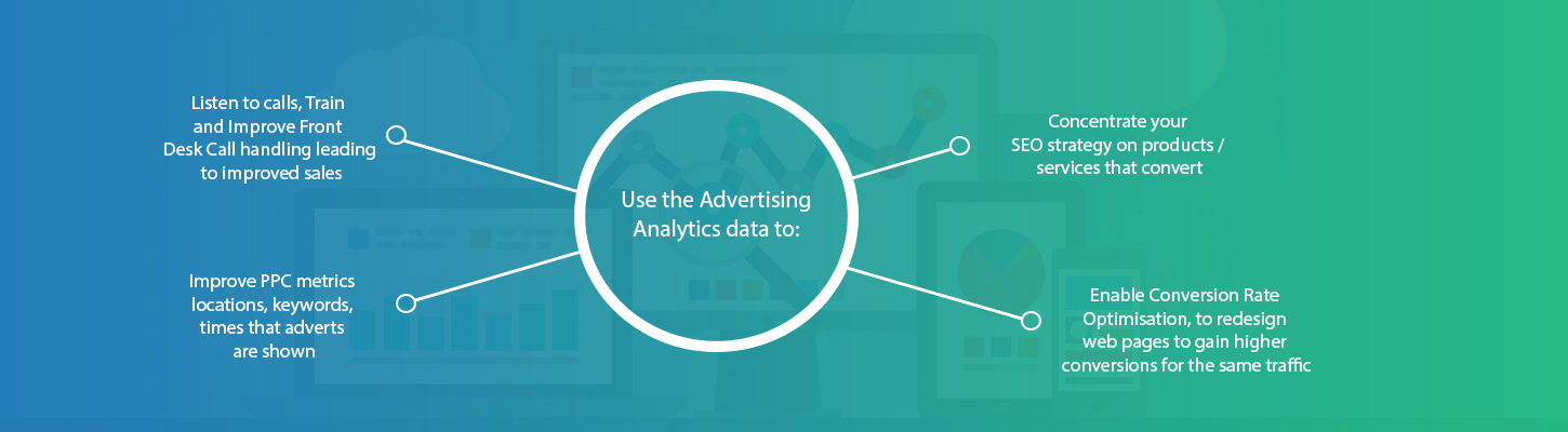 We increase business efficiency and effectiveness of their marketing activities by observing where customers come from, how much the lead costs, how much they spent, how their call/ email is handled. We are then able to further improve margins (in an evidence derived manor) by using this data to target PPC (Pay Per Click), SEO (Search Engine Optimisation) and CRO (Conversion Rate Optimisation) initiatives all in one fully integrated platform; i.e. you don’t have to keep linking to other platforms like our competitors!